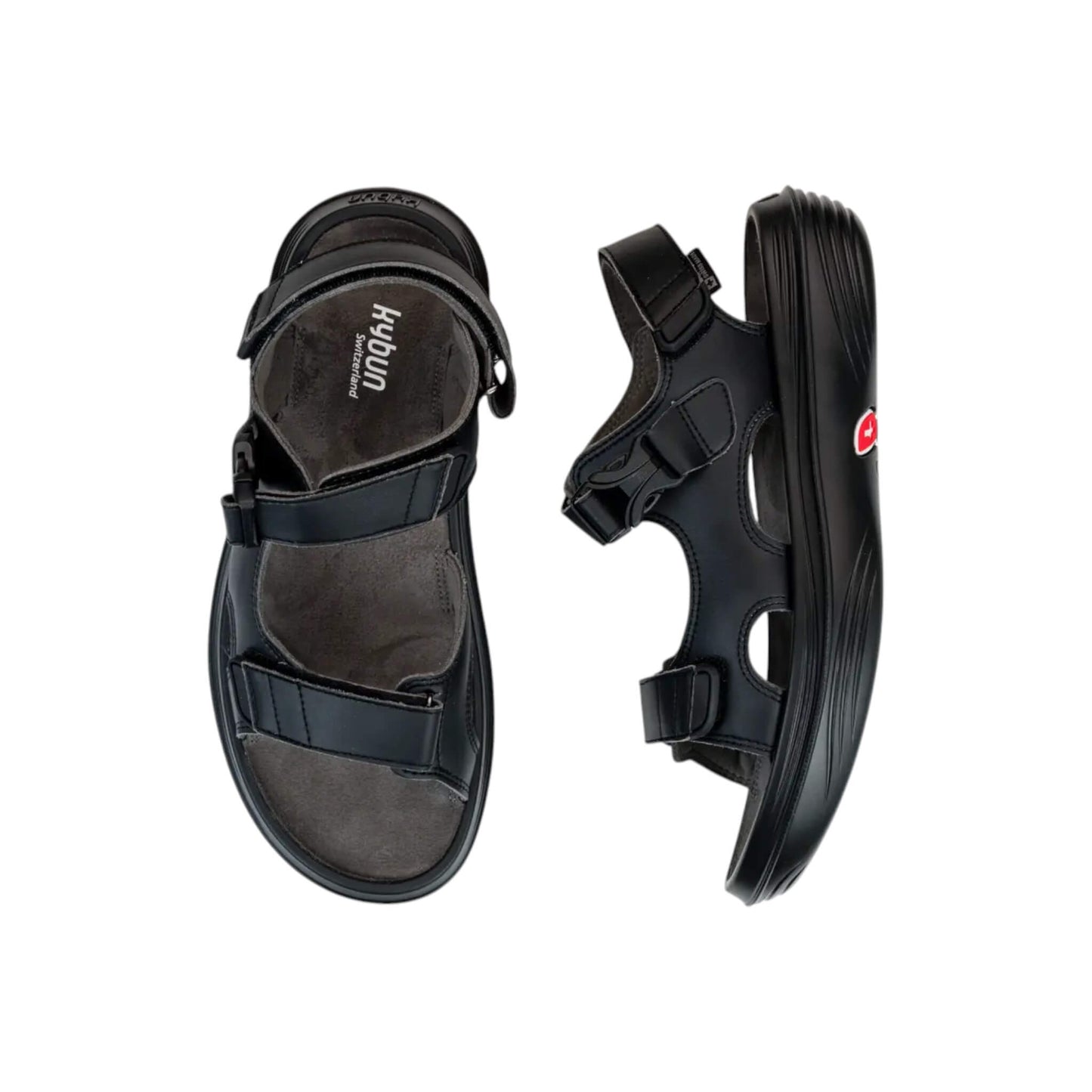 Entdecken Sie die kybun Pado Black - die erste vollständig in der Schweiz hergestellte Sandale in unserem Sortiment. Diese innovative Gesundheitssandale vereint traditionelle Schweizer Handwerkskunst mit der bewährten kybun Luftkissen-Technologie und bietet dank ihres weiten Fußbetts besonders viel Komfort für breite Füße.