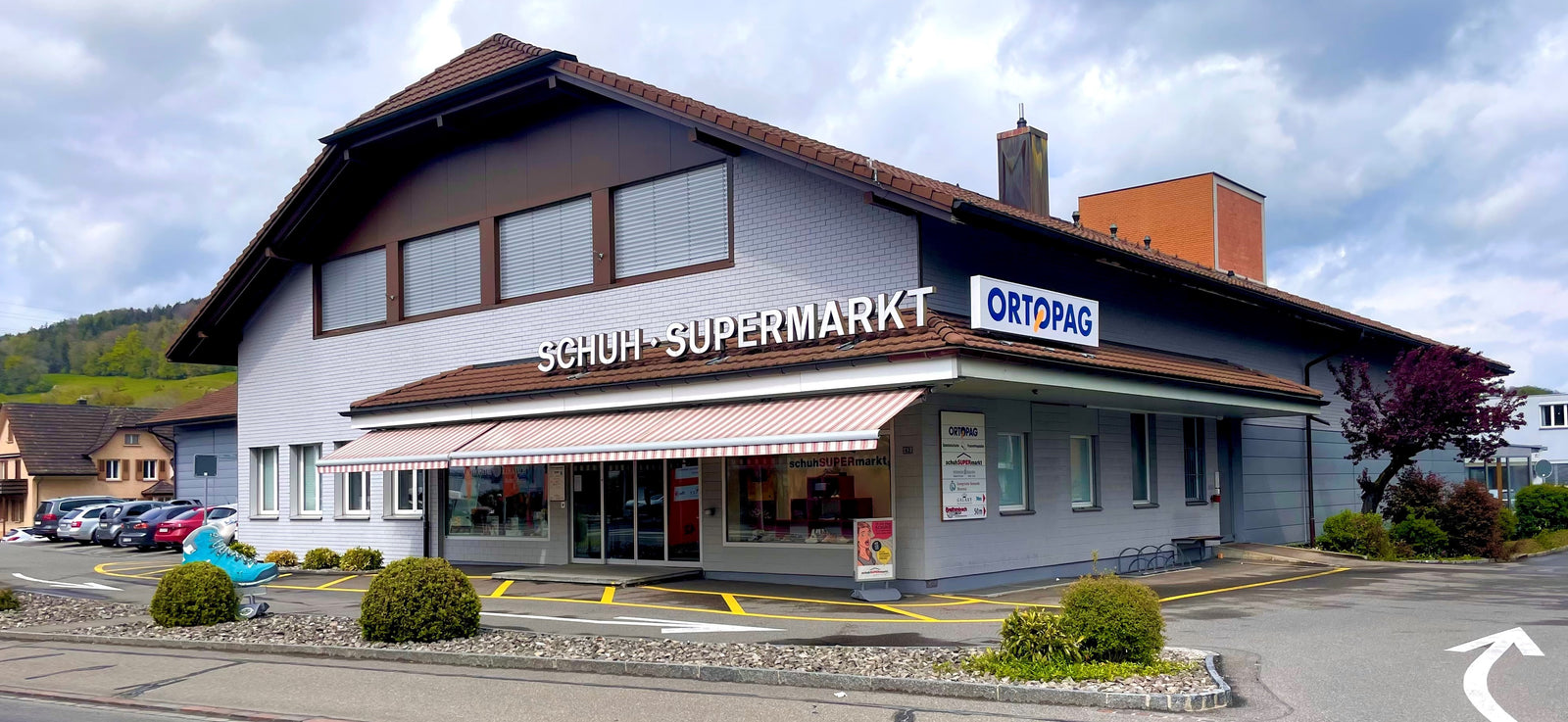 20 Jahre später drängte sich ein Umbau auf, weil das Flachdach an verschiedenen Stellen undicht war. Die Lösung, mit einem grossen Satteldach, bei dem der Estrichraum gut genutzt werden kann, passte gut in diese Gegend und unterstreicht den Dorfcharakter. Im Laufe der Jahre wurde mit der Firma Tiefenbacher AG, ein leistungsfähiger Partner gefunden, der das Angebot für modische und preisgünstige Schuhe für alle übernahm. Zudem konnten immer wieder attraktive Mieter dazu gewonnen werden. Im Neubau spielte damals die Sanastico-Produktion, sprich die Herstellung von Zoccolinos, die wichtigste Rolle. In der Zwischenzeit ist diese Sparte mit der Stiftung Lebenshilfe umgesetzt worden.